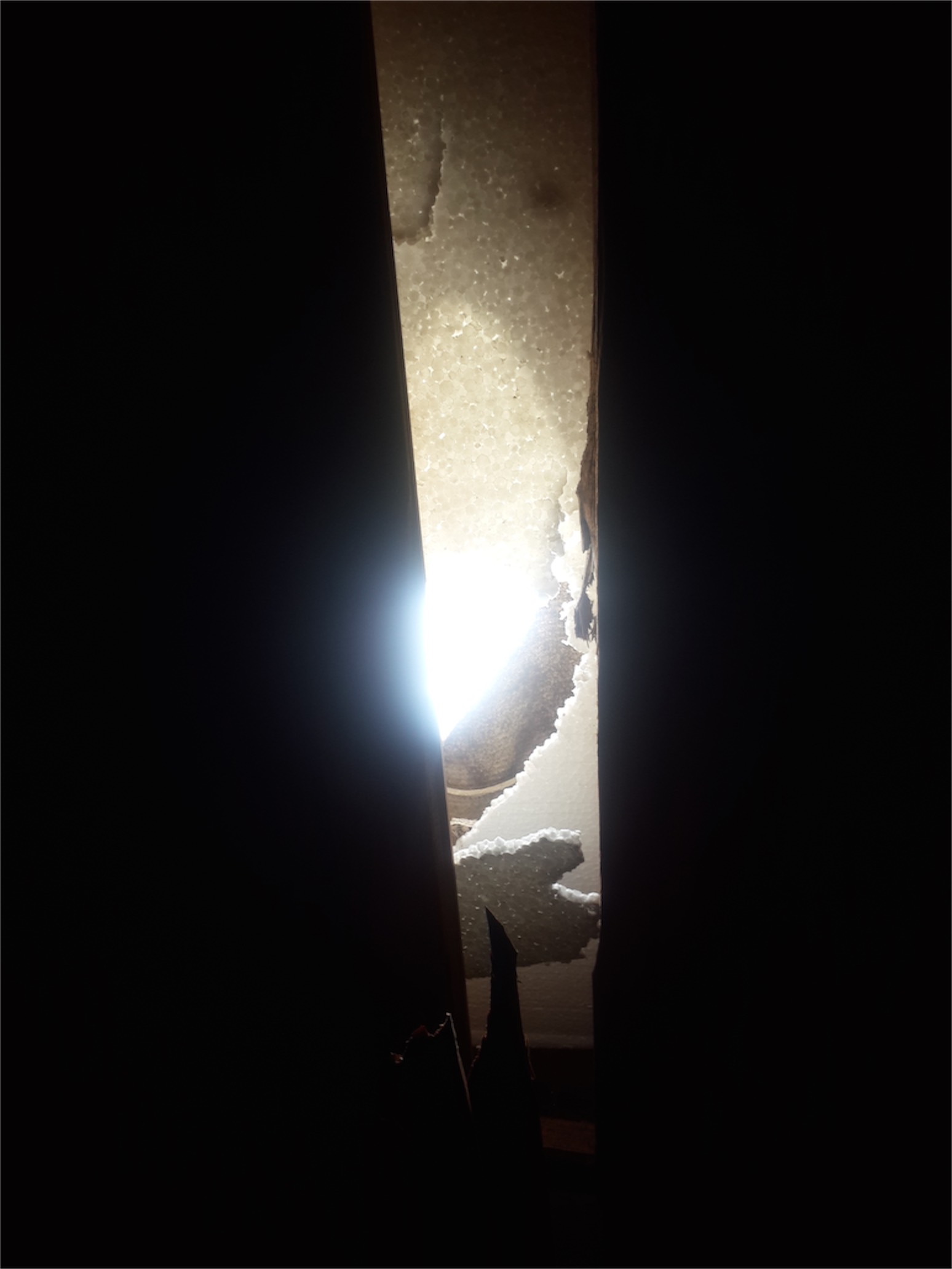 fragmentos de fibrocemento dispersos por toda la habitacion. |